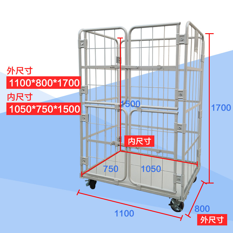 铭晔折叠物流台车四小门可分层搬运车可移动理货周转金属配送笼车