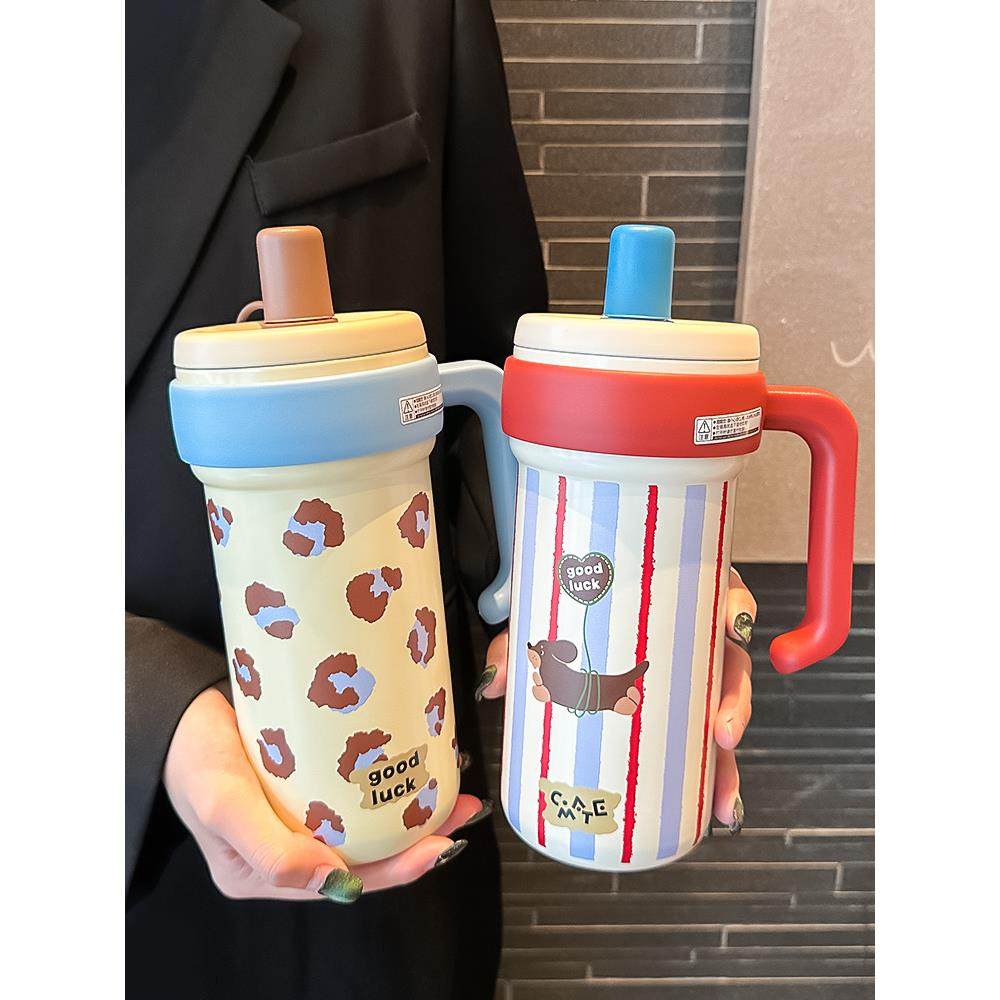 言仓线条小狗保温杯保冷便携水杯儿童学生女生情侣生日礼物