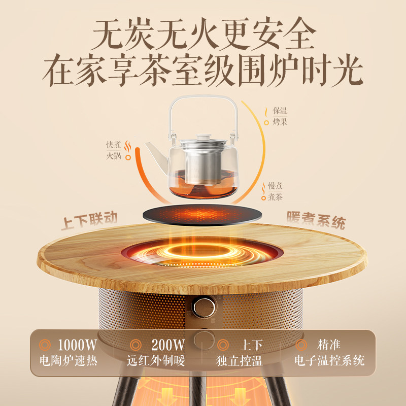 推荐理由:艾美特围炉煮茶桌取暖器家用烤火炉速热小魔桌电暖气暖炉AIR13PRO