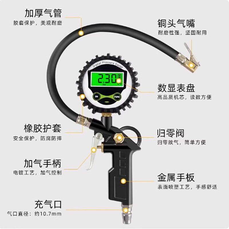 推荐理由:胎压表气压表高精度带压力充气头汽车轮胎压监测器计加气枪打气嘴