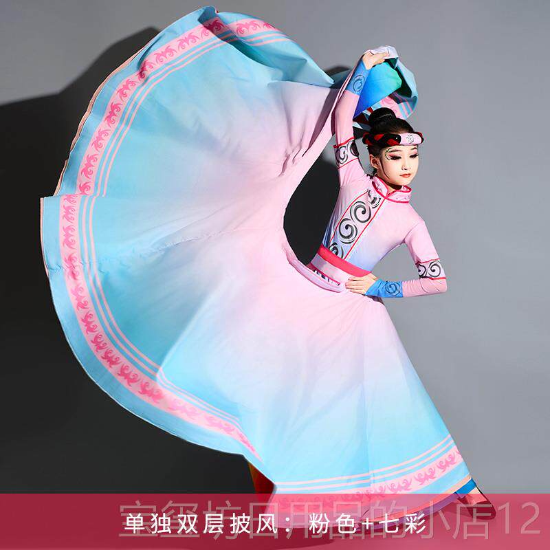 高档儿童云南裙七彩霓篷虹服彝族服饰斗大摆女童火把节舞蹈表服演