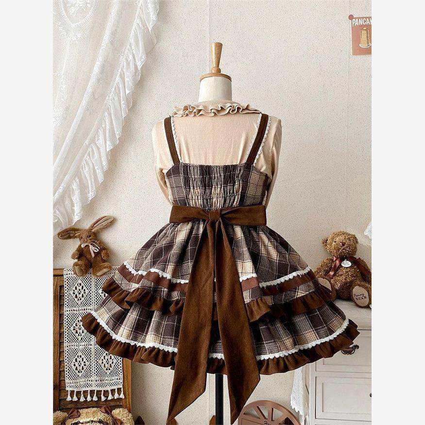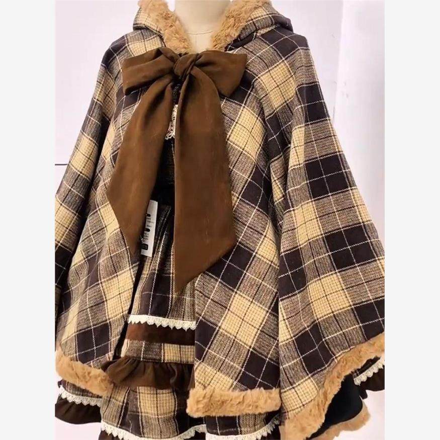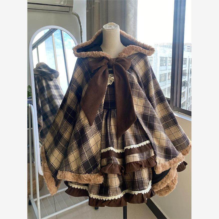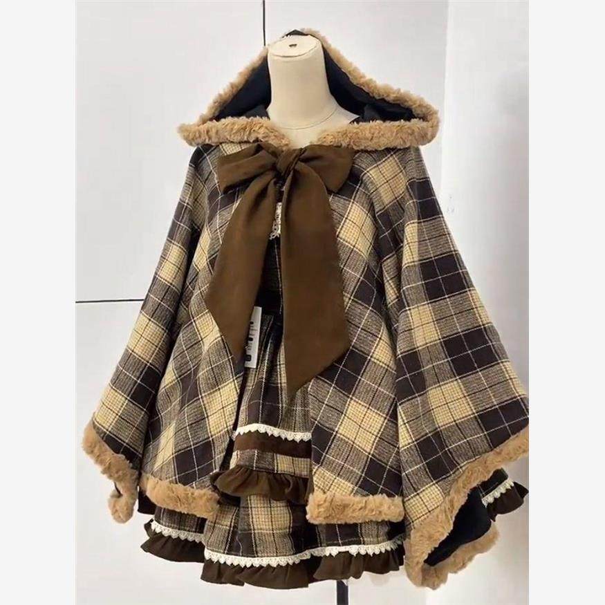 推荐理由:蝴蝶结格纹斗篷外套秋冬新款洛丽塔JK吊带连衣裙两件套lolita套装