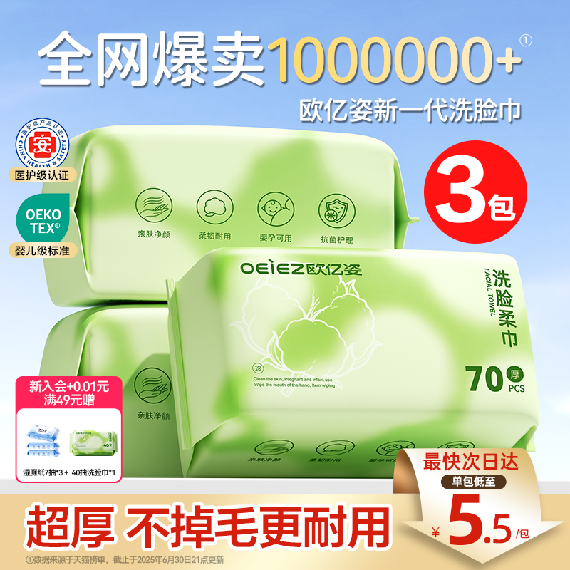 欧亿姿洗脸巾一次性纯棉加厚女洗面擦脸棉柔巾卸妆官方旗舰店正品