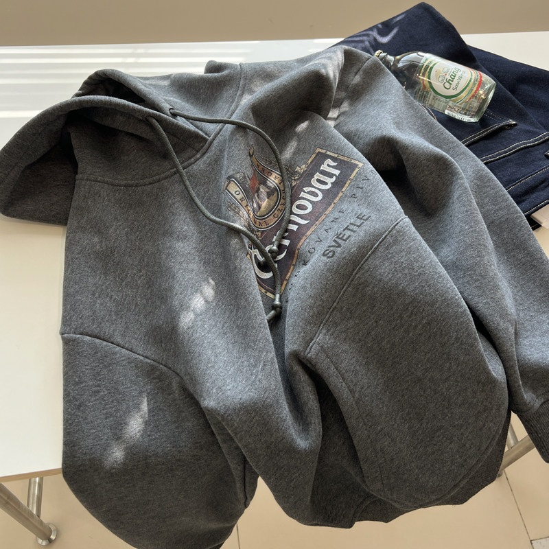 推荐理由:美式复古做旧字母连帽套头卫衣女宽松慵懒加绒加厚帽衫冬季新款潮