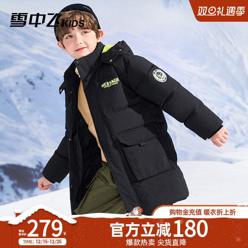 雪中飞kids童装女童中大童字母印花男童新款洋气中长款儿童羽绒服