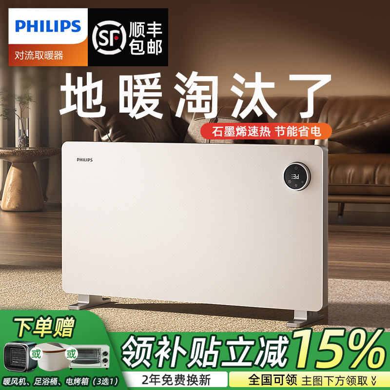 飞利浦石墨烯取暖器家用2025新款大面积速热电暖器立式对流暖风机