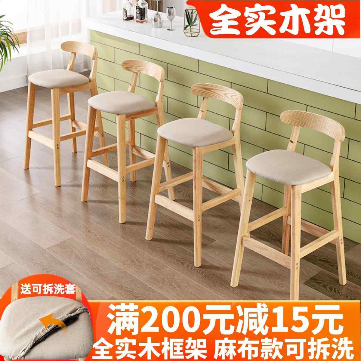 实木吧台椅前台高脚凳家用靠背椅子现代简约奶茶店吧凳北欧酒吧椅