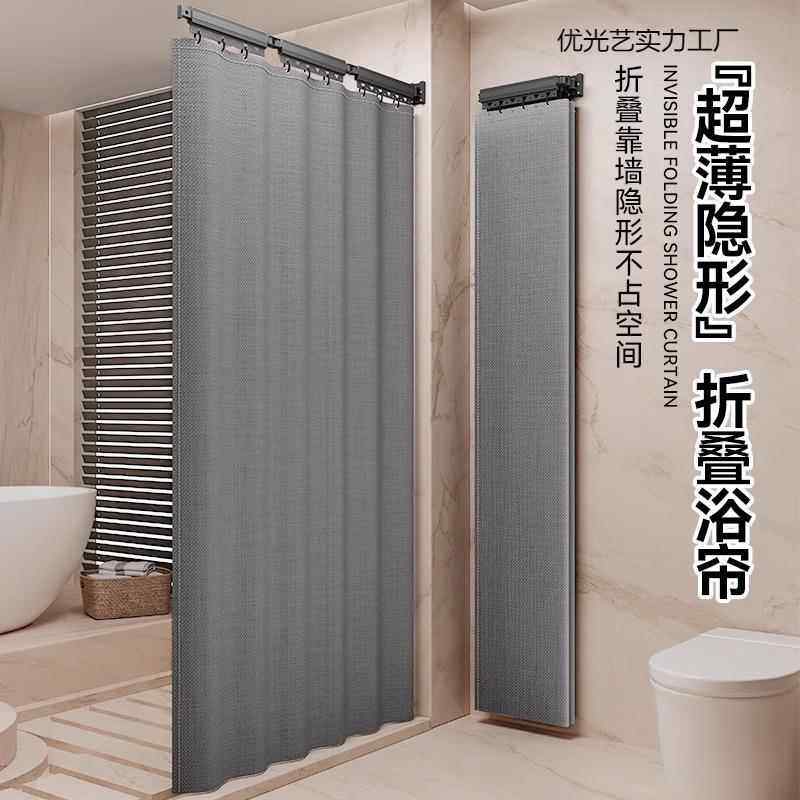 卫生间防防霉隐形高淋浴档水折叠帘洗澡家浴用优光折叠挂帘室免打