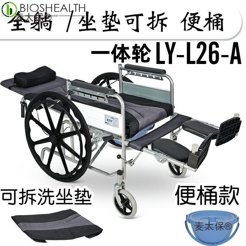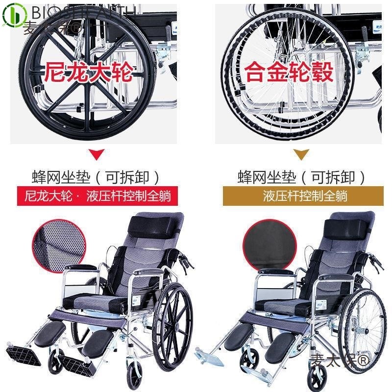 推荐理由:麦太保全躺轮椅折叠轻便带坐便老人便携多功能超轻手推车复健椅