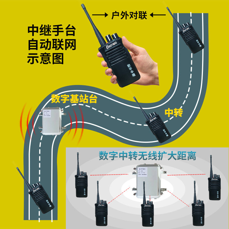 推荐理由:百事通对讲机隧道工地15公里手台户外手持机对讲机工地专用中继台