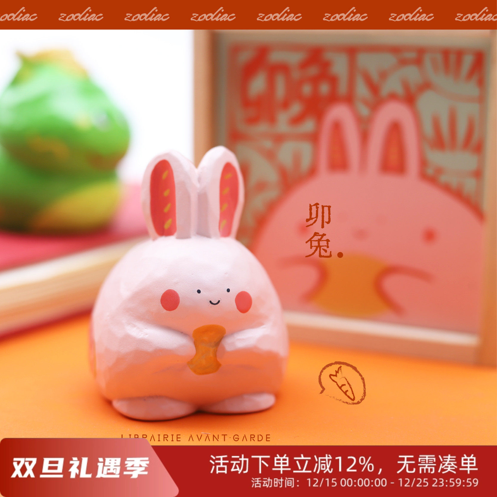 大美术馆/十二生肖系列摆件 树脂木雕兔生日礼物手办南京先锋书店