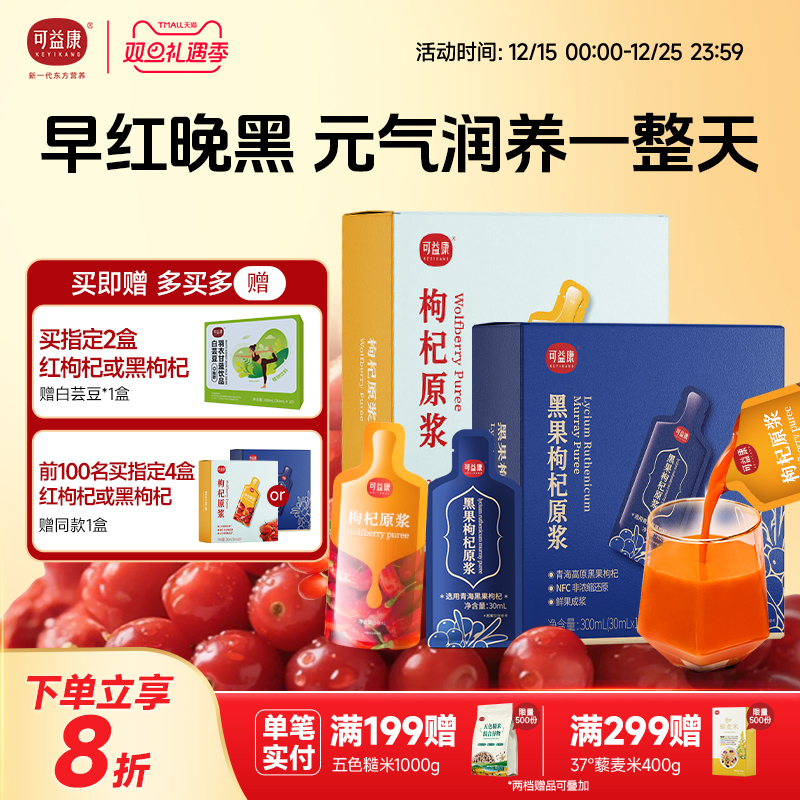 可益康鲜榨黑枸杞原浆鲜枸杞汁宁夏桑葚蓝莓沙棘红枸杞礼盒礼物