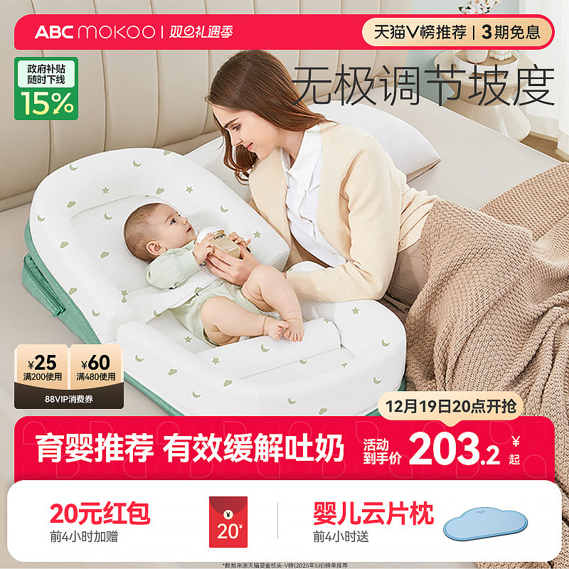 ABCmokoo婴儿防吐奶斜坡垫防溢奶呛奶枕头新生儿床中床躺喂奶神器