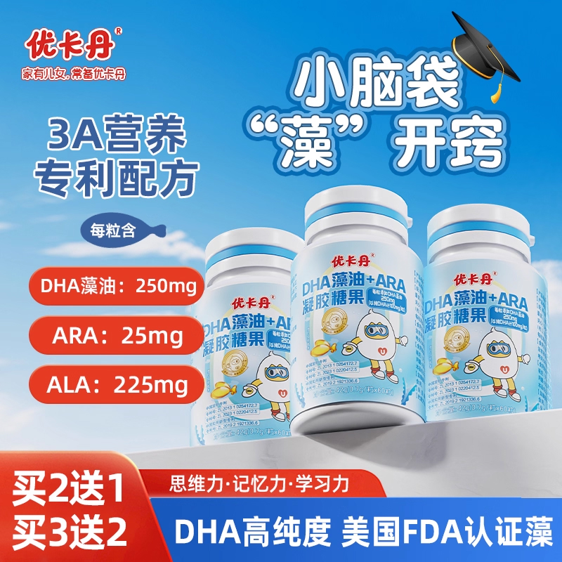 买3发5】优卡丹dha藻油儿童孕妇学生专用青少年记忆力官方旗舰店