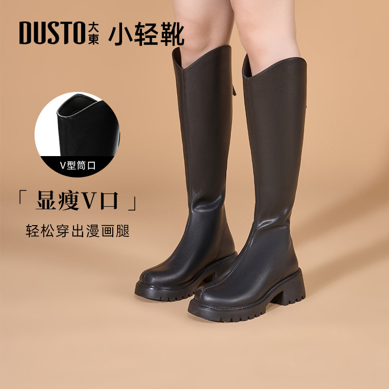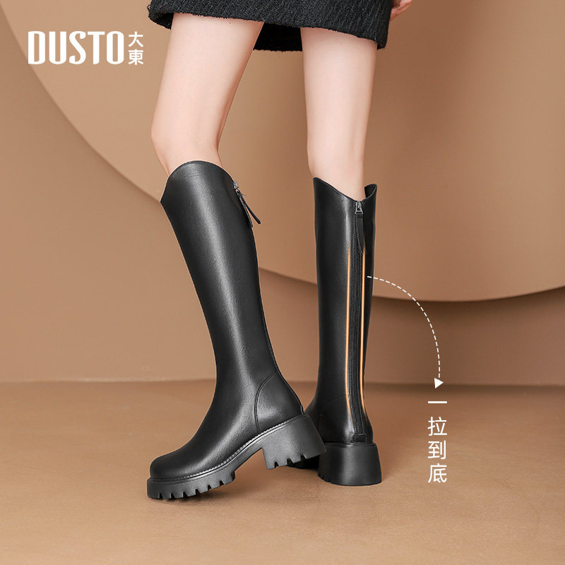 大东骑士靴女鞋2025冬季新款高跟粗跟圆头后拉链厚底小轻靴D1149A