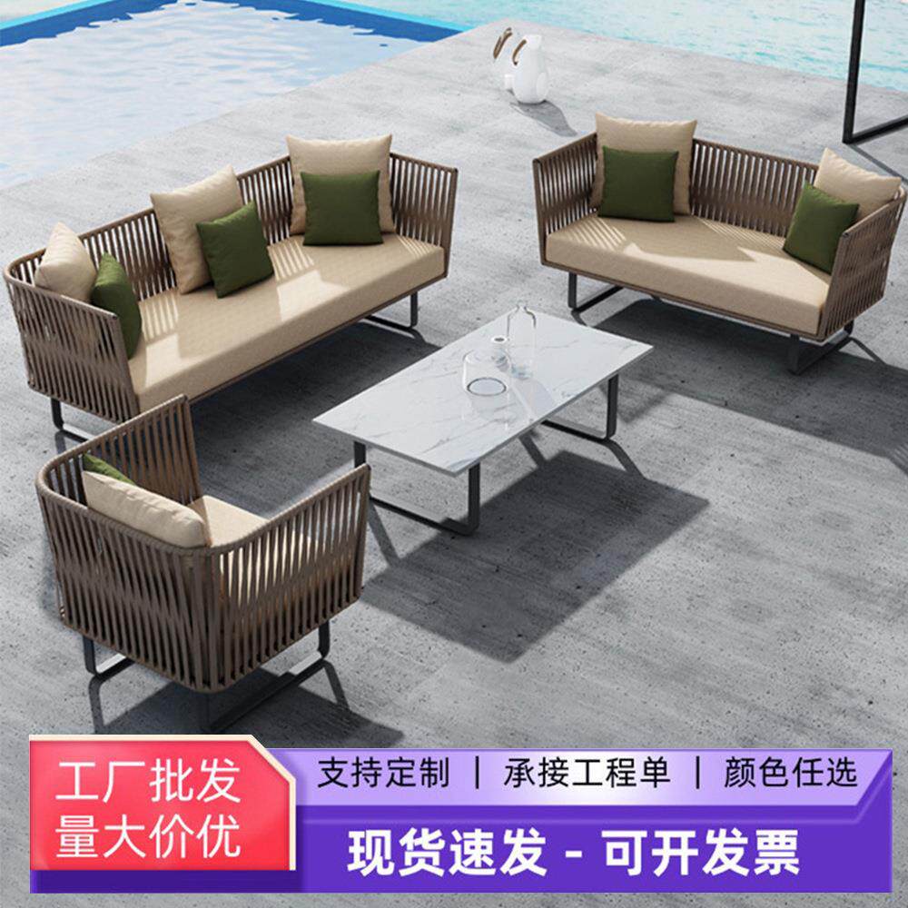 户外藤编沙发三人防水防晒名宿庭院花园阳台室外休闲茶几藤椅家具