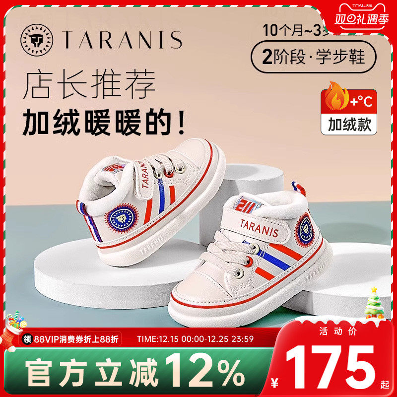 泰兰尼斯新款男童鞋女宝宝机能鞋冬季加绒儿童鞋子防滑运动鞋棉鞋