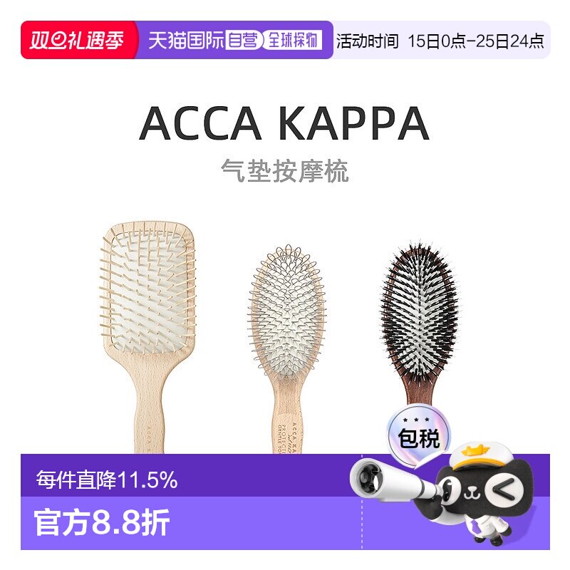 香港直邮Acca Kappa猪鬃毛尼龙环形榉木气垫按摩梳舒缓放松头皮