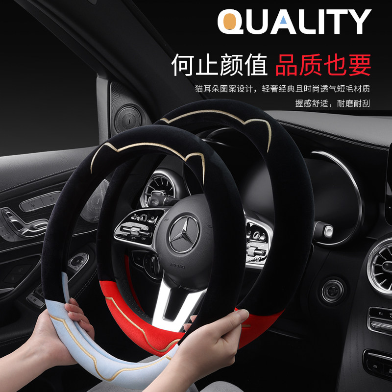 冬季毛绒方向盘套高级感轻奢短毛绒新款汽车方向盘把套女冬天保暖