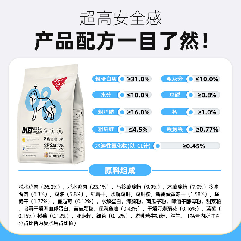 畅享优品超能食补冻干狗粮生肉粒泪痕管理幼犬成犬通用型1.5kg