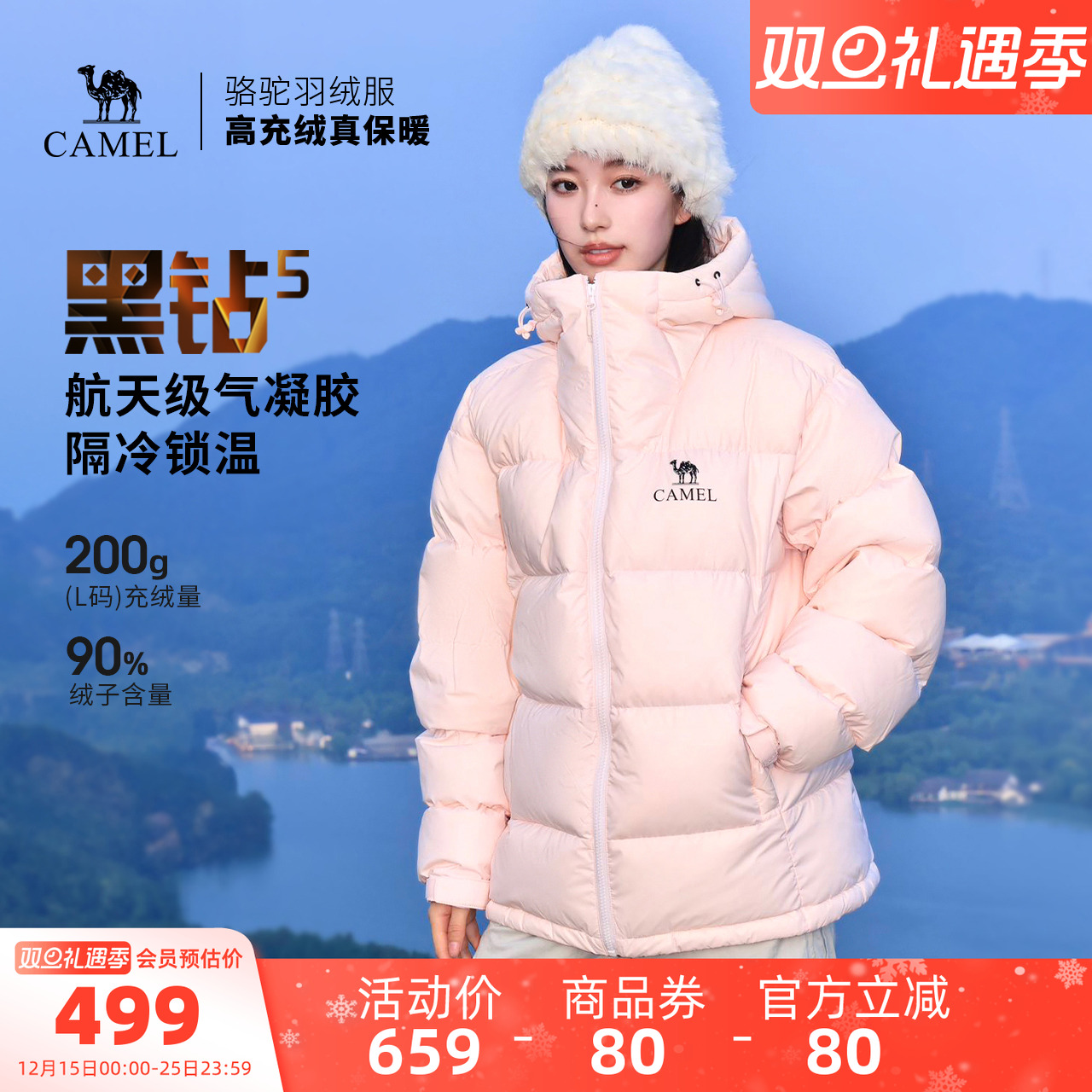 骆驼黑钻5PRO户外泡芙羽绒服冬季新款女款男款防风外套拒水面包服