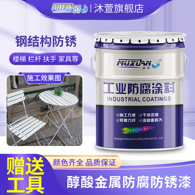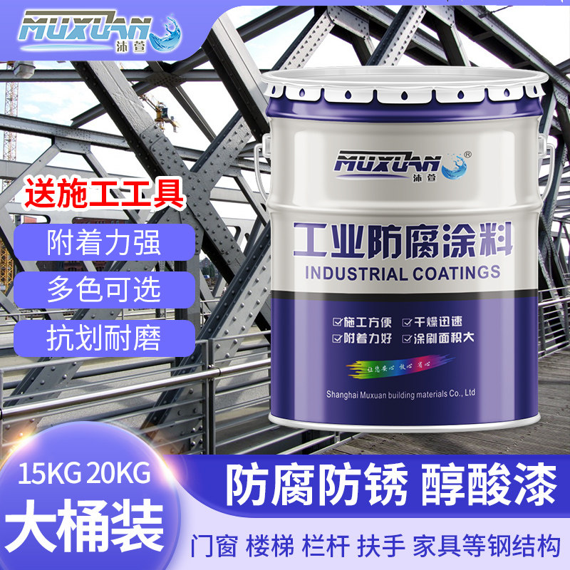 推荐理由:沐萱金属防锈漆 醇酸调和漆户铁门栏杆翻新漆 工业油漆大桶装20KG