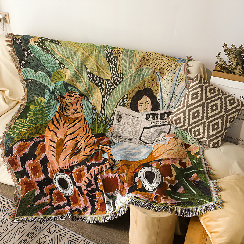 北欧休闲毯懒人沙发巾网红民宿装饰床尾盖毯卡通露营野餐垫挂毯潮