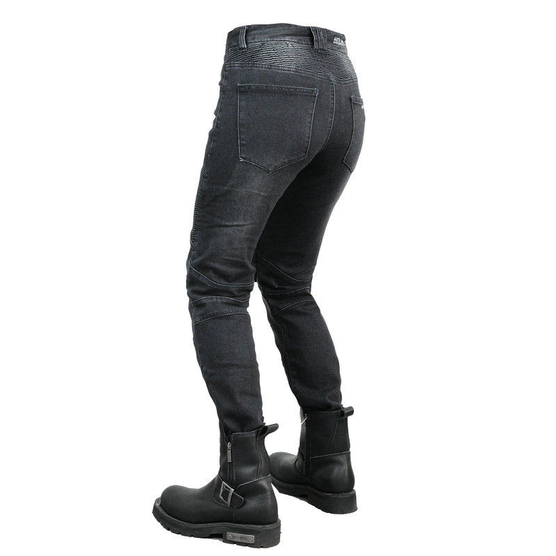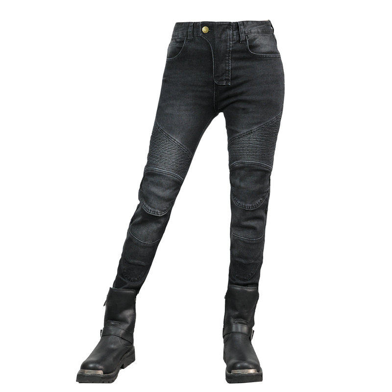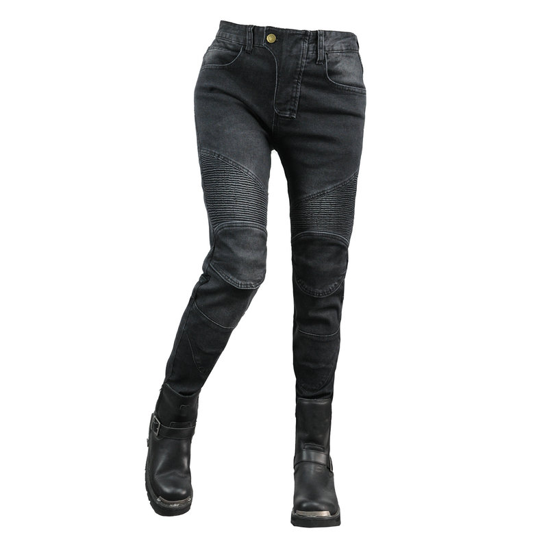 VOLERO 休闲个性机车裤 摩托车牛仔裤 机车赛车骑行裤女 复古弹力