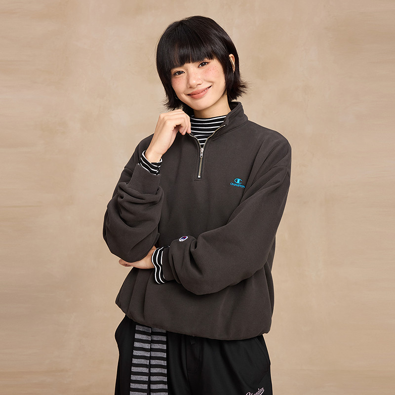 Champion冠军半拉链卫衣女2025冬季新款半开襟立领休闲潮牌纯色