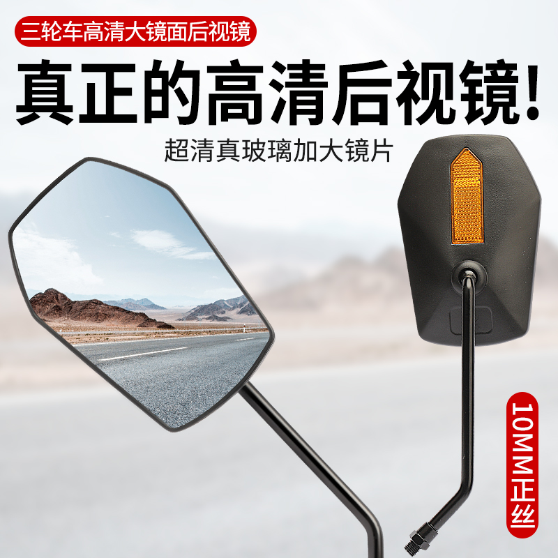 推荐理由:太子款电动三轮车后视镜高清反光镜三轮摩托车10mm反光镜通用