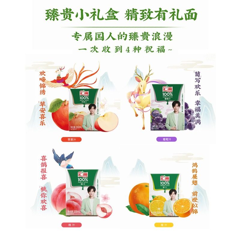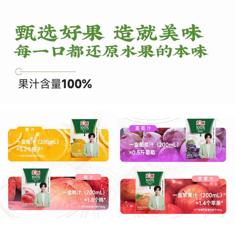 推荐理由:汇源100%果汁200ml*12/24盒100分百汇源橙汁桃汁苹果葡萄汁纯果汁