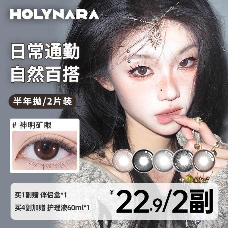 Holynara美瞳半年抛2片自然素颜学生通勤日常三明治工艺隐形眼镜