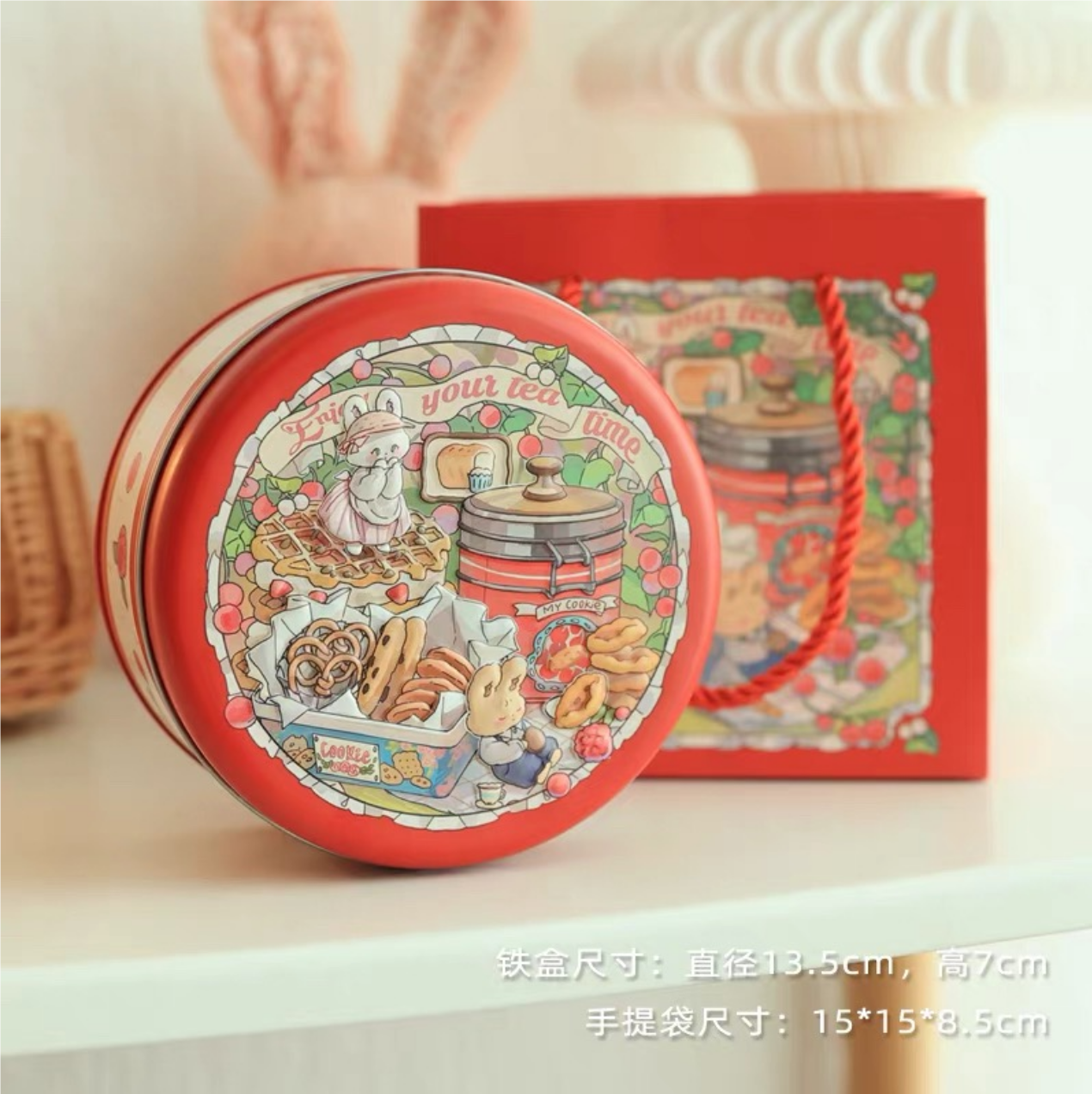 万圣节糖果曲奇饼干包装盒马口铁盒圣诞节草莓甜品盒卡通圆形罐子