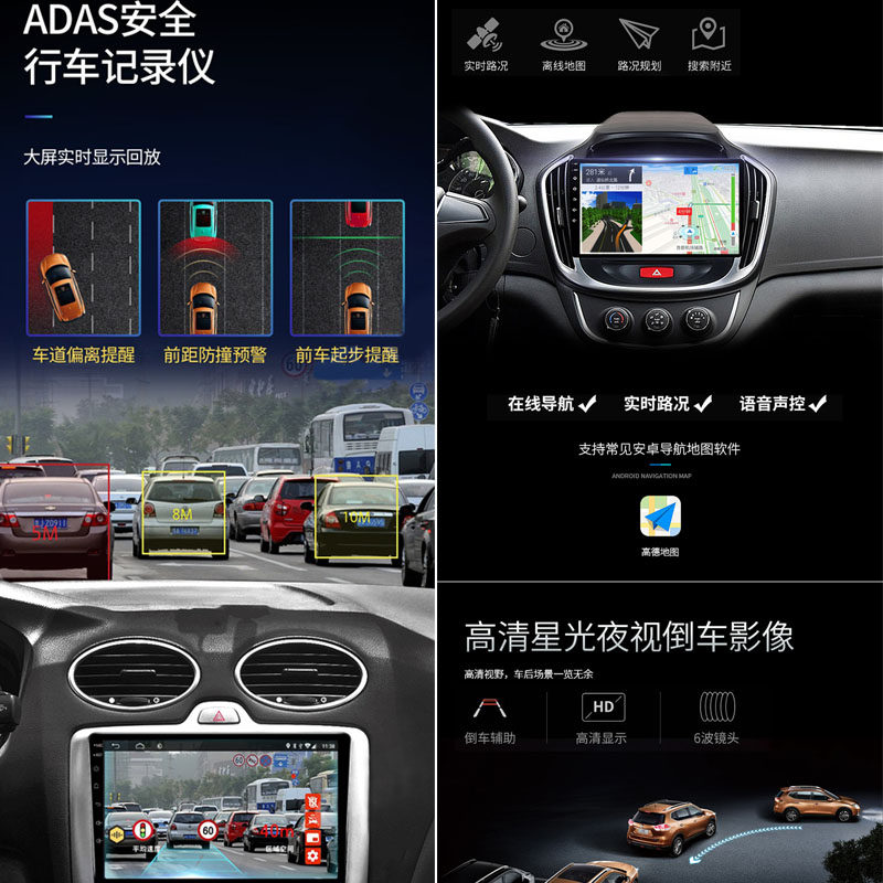 推荐理由:通用安卓系统GPS智能蓝牙高德导航大屏中控倒车影像一体机记录仪