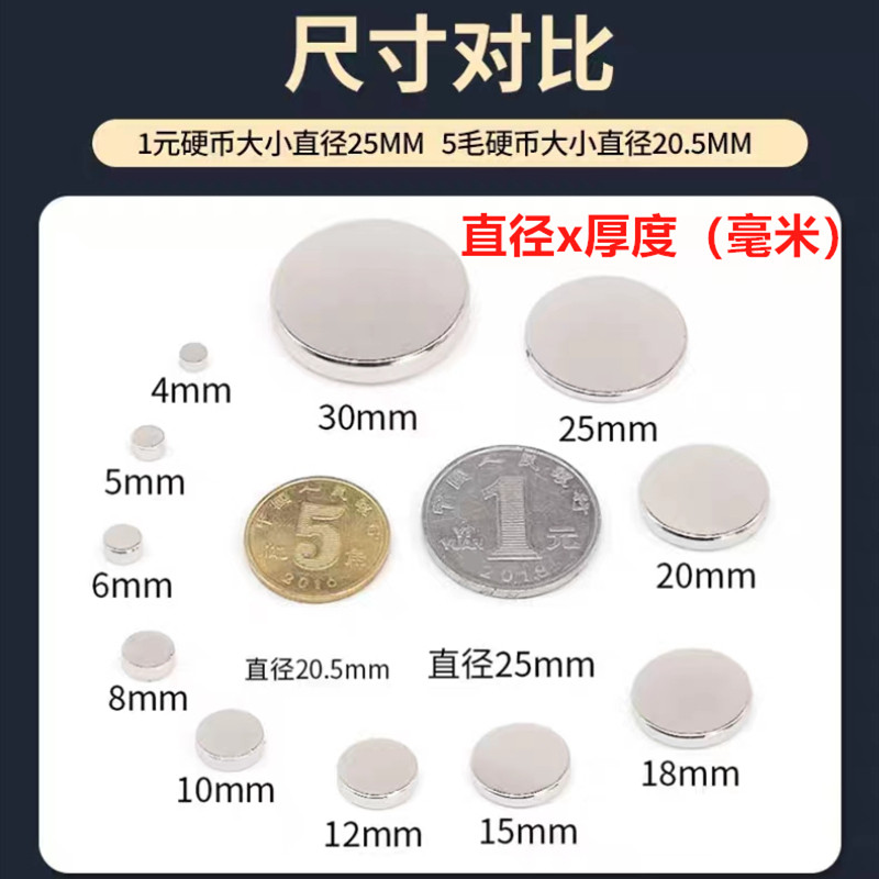 推荐理由:【超强磁力】N52圆形强力磁铁4~5mm钕铁强磁吸铁石永磁片模型加磁