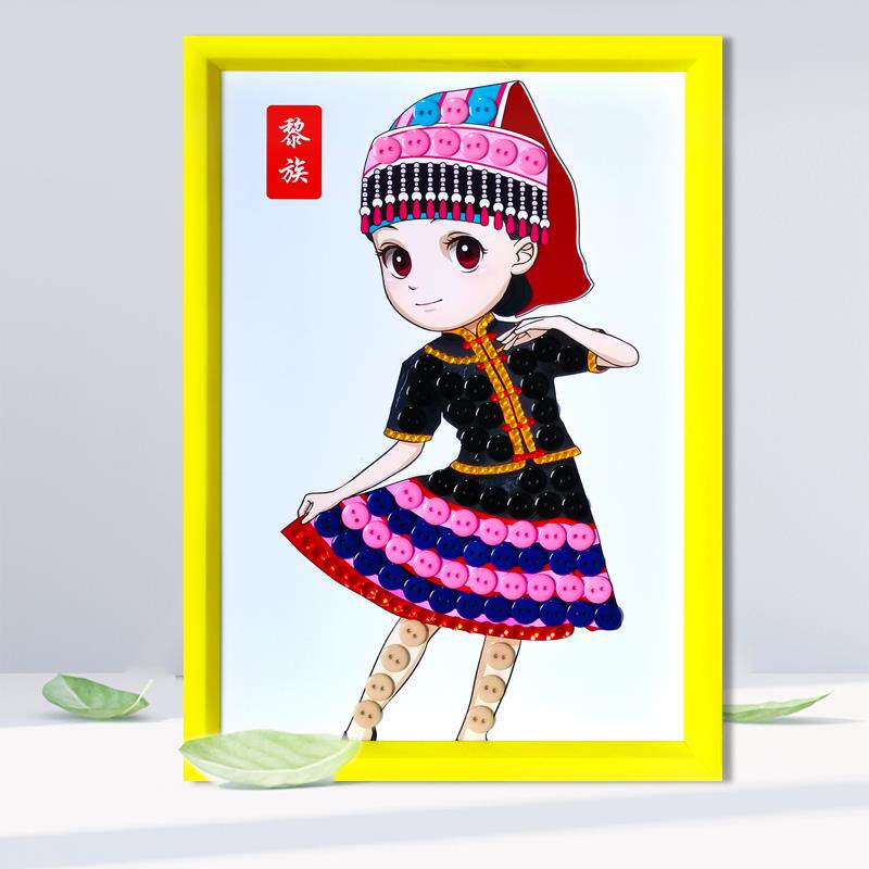 民族团结亲子手工diy纽扣贴画材料包少数民族社区宣传环创装饰画