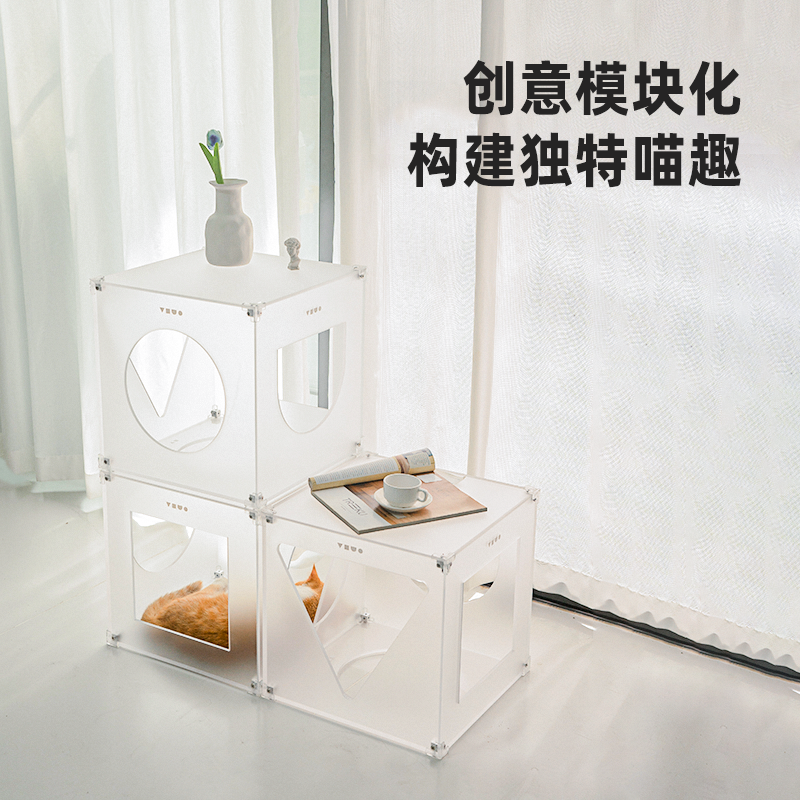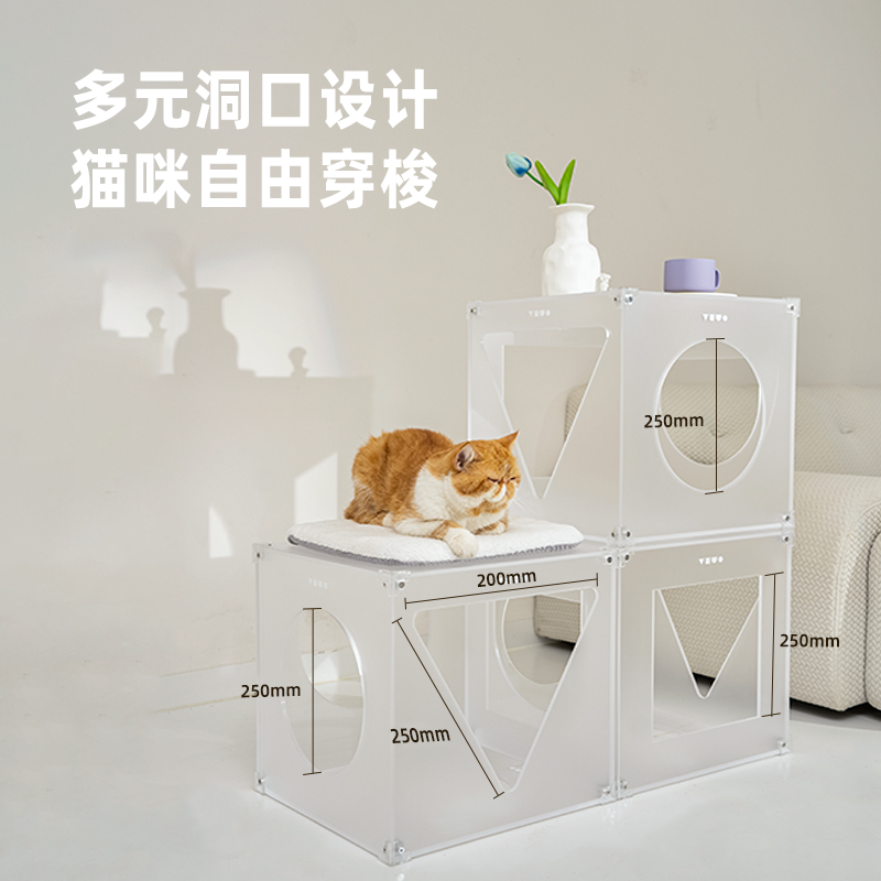 组合式多层边几宠物茶几猫爬架隧道共用设计猫家具美学