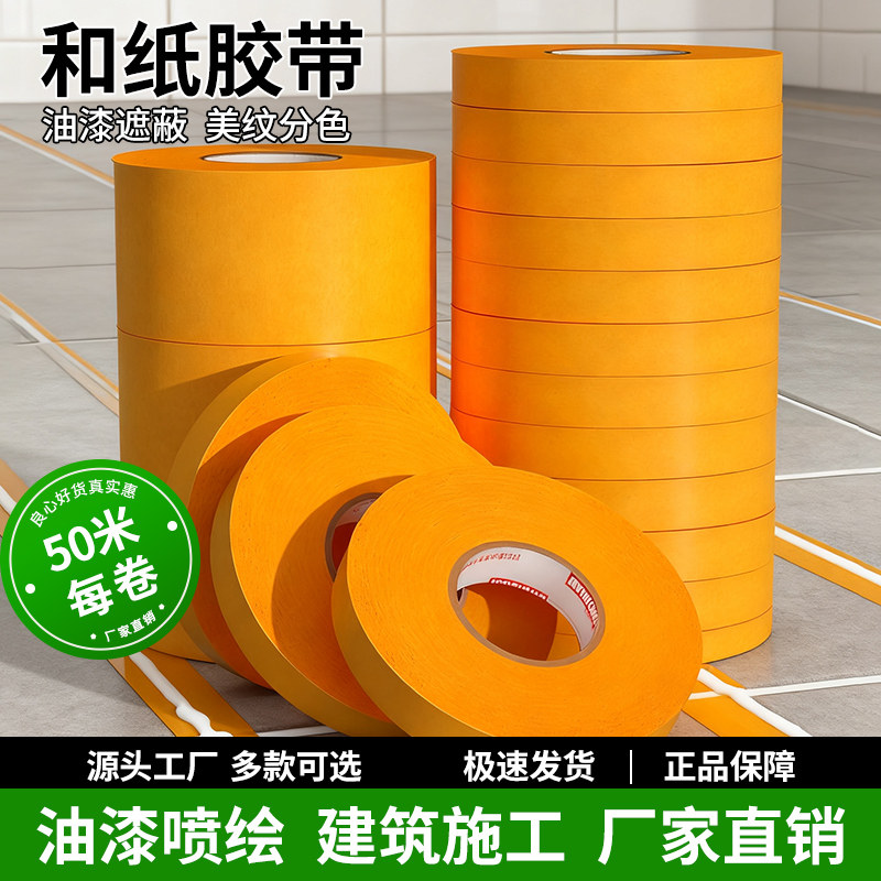 推荐理由:和纸胶带黄色美纹纸美术生专用绘画手撕无痕不渗透高粘汽车喷漆施工装修遮蔽分色外墙真石漆美缝胶带纸整箱批