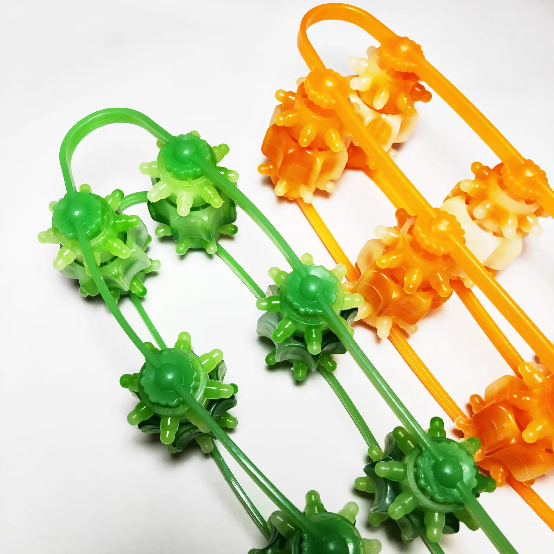 源头工厂爆款仿玉石色三排手动拉背条按摩器双色塑料滚轮加长加宽