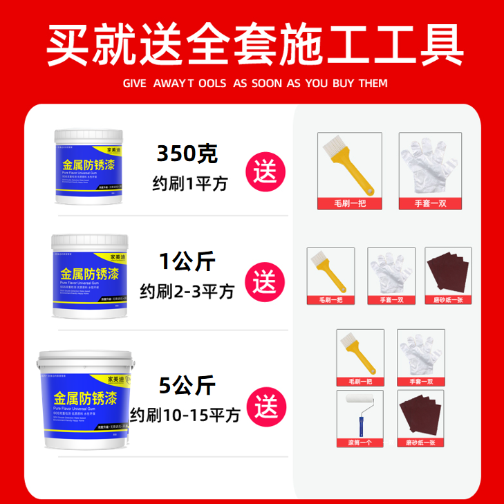金属漆防锈漆免除锈打磨铁锈转化剂水性油漆翻新改色黑白色防腐漆