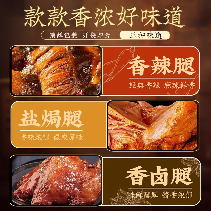 推荐理由:大鸭腿开袋即食盐焗卤香辣味整箱批发鸭货肉类熟食休闲小吃零食品