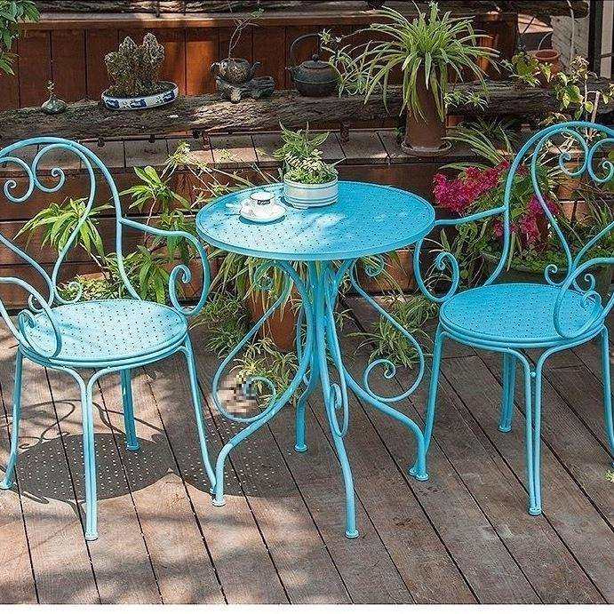 推荐理由:简约庭院室外桌椅阳台花园户外圆桌组合三套件休闲奶茶商用桌椅J^