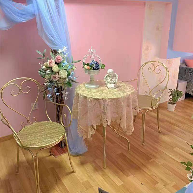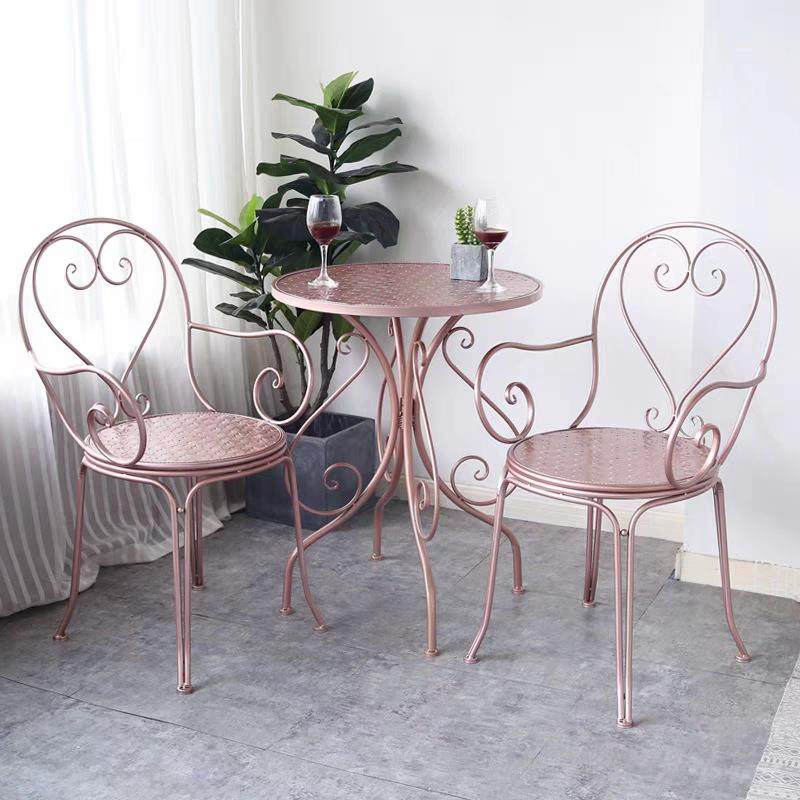 简约庭院室外桌椅阳台花园户外圆桌组合三套件休闲奶茶商用桌椅J^