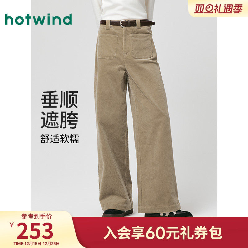 热风女士长裤宽松灯芯绒休闲裤2025年冬季新款时尚宽松阔腿长裤
