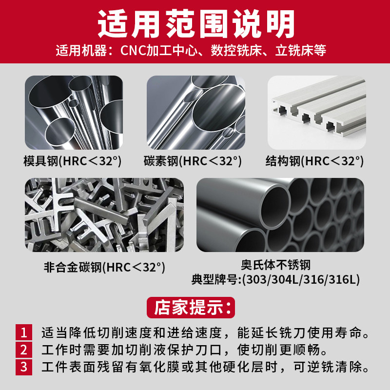 推荐理由:加硬键槽直柄高速钢立铣刀4刃3-20mm数控机/车床洗刀四刃白钢铣刀