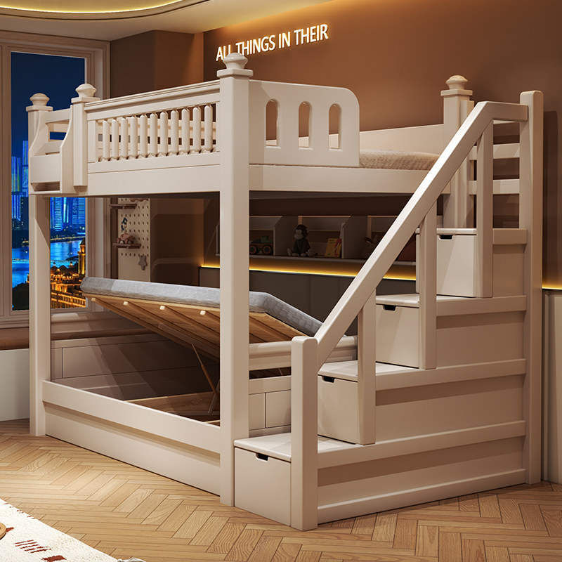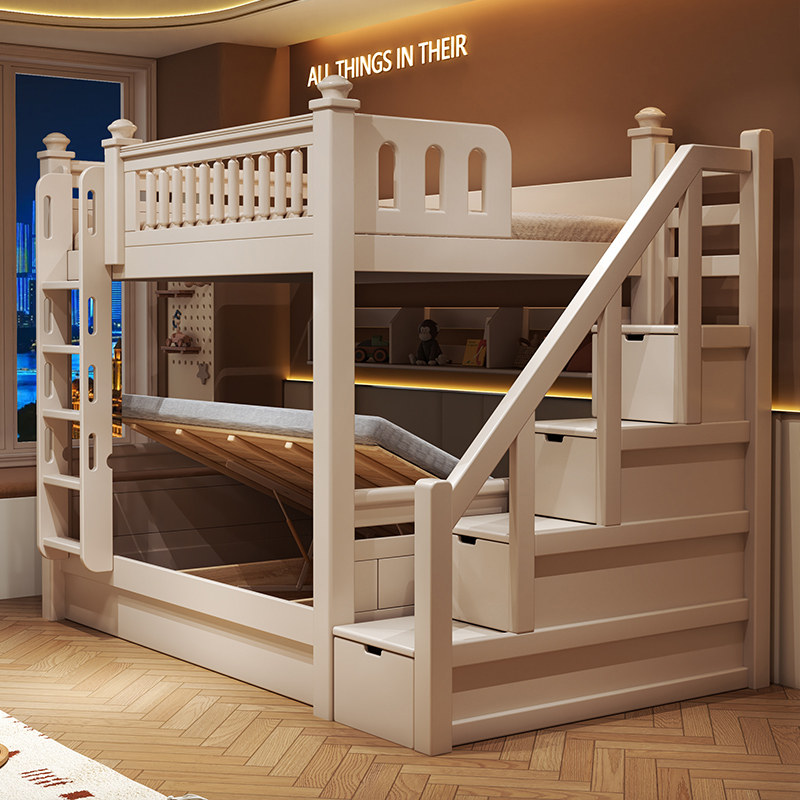 儿童上下铺双层床实木床男女孩飞屋床树屋床带滑梯床高低床上下床