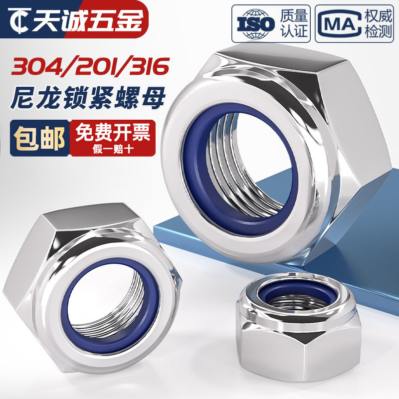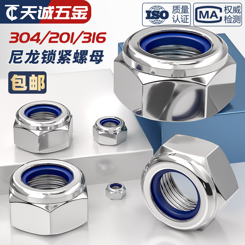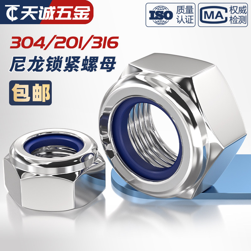推荐理由:304/201不锈钢316锁紧螺母防松尼龙六角防滑自锁螺丝帽M3M4M5M6M8
