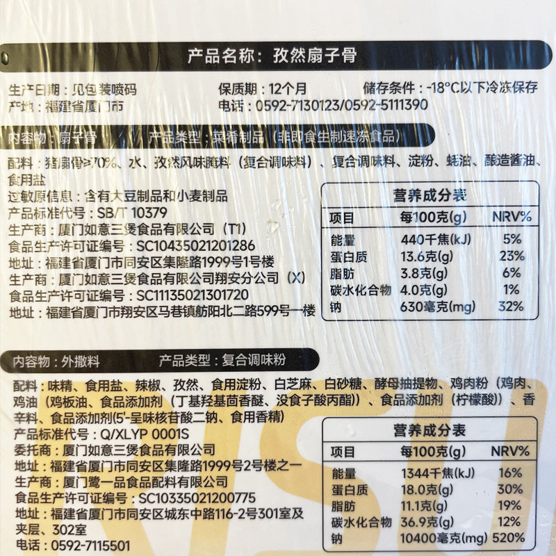 推荐理由:如意三宝孜然扇子骨255g*4盒手抓炸猪排骨免洗切调理半成品酒店用