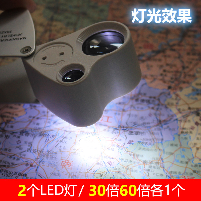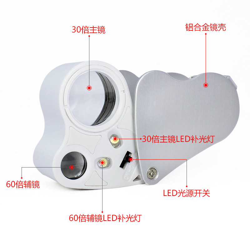 30倍60倍地质放大镜高倍LED灯看钻石腰围码玉石珠宝古玩鉴定工具