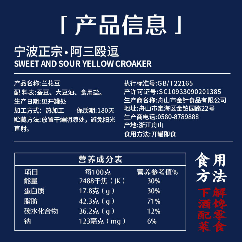 宁波阿三欧豆兰花豆零食阿三炒货坚果宁波蚕豆原味酥蚕豆制品罐装